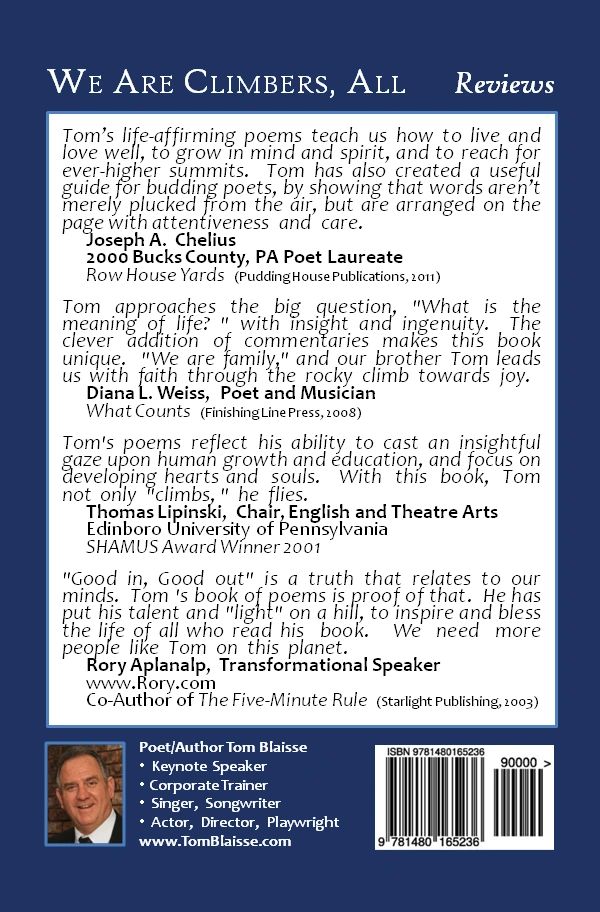 The second-half of this book contains Tom's literary critique and a personal comment for each poem. He wrote these poems over a 35-year period, as he walked his unique life path, reached many new heights, and gained new perspectives about what can help us learn, love, and live more joyfully as we each climb our own proverbial mountains.